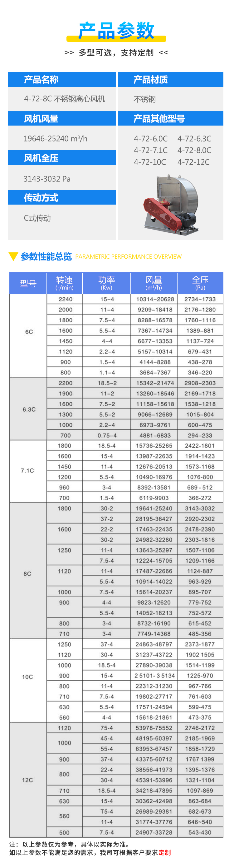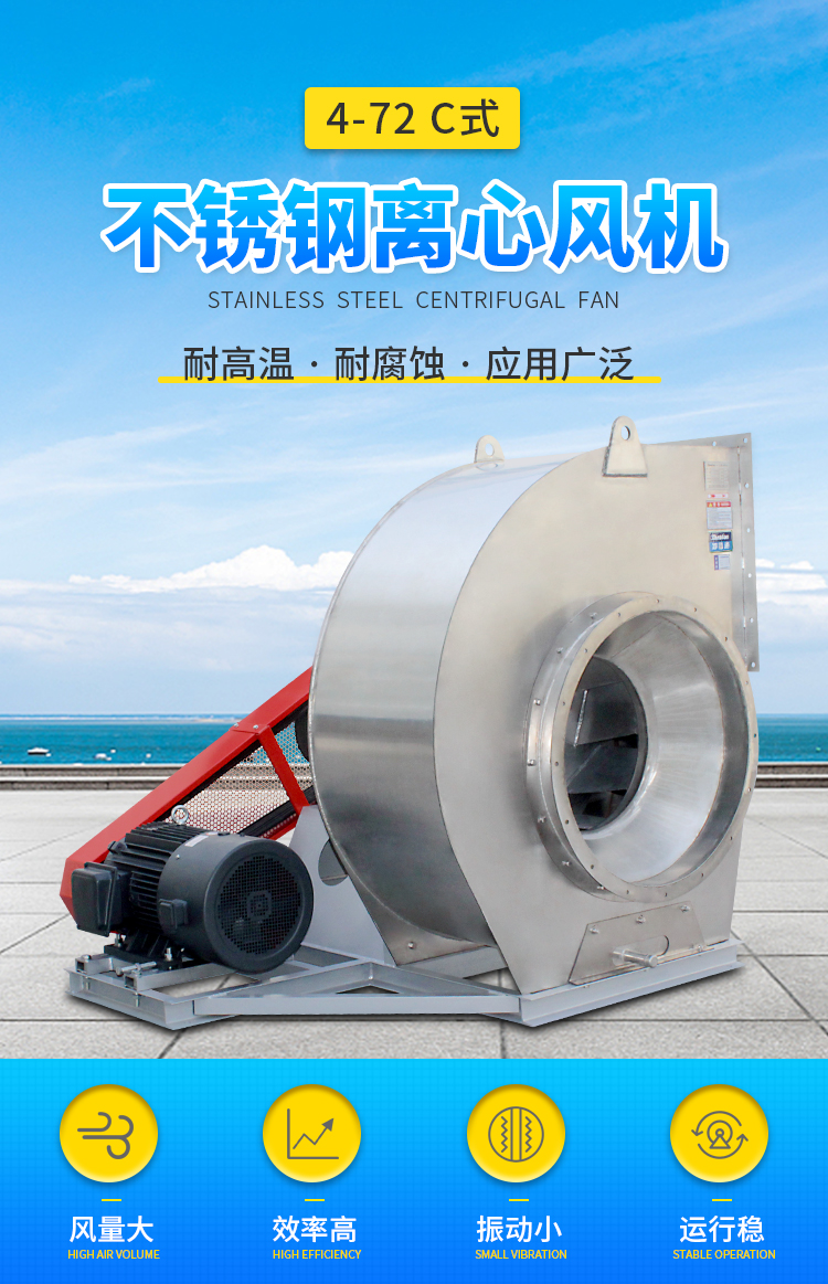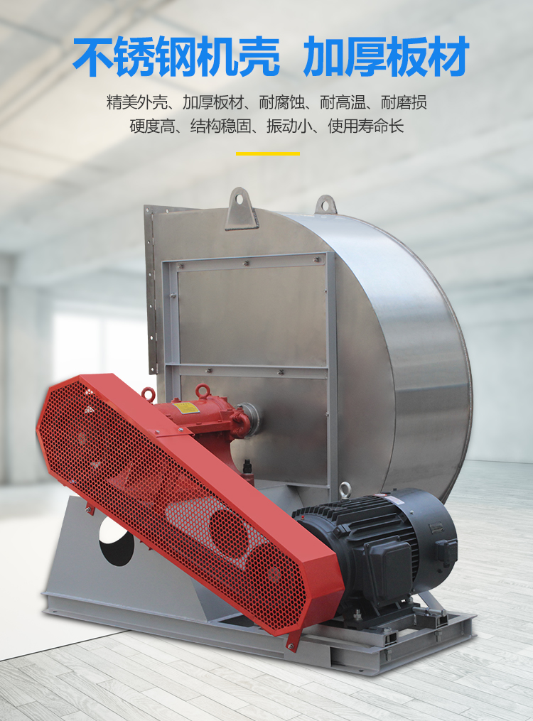 外殼及風輪采用不銹鋼風機材質(zhì)焊接而成,耐高溫,能有效防酸堿、防腐蝕