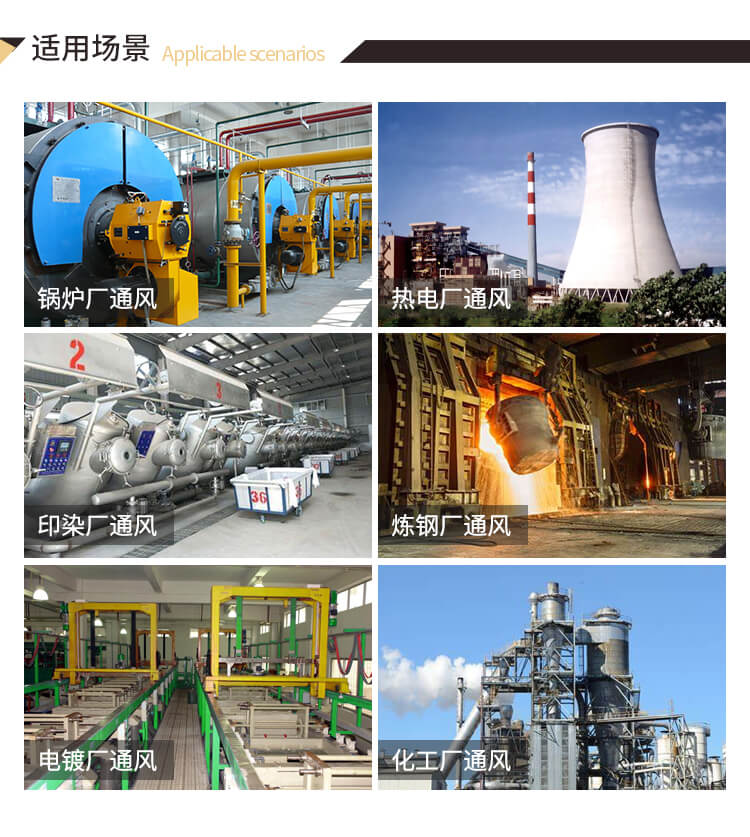 廣泛適用于工礦企業(yè)、大型建筑物、賓館酒樓等室內(nèi)通風(fēng)換氣。