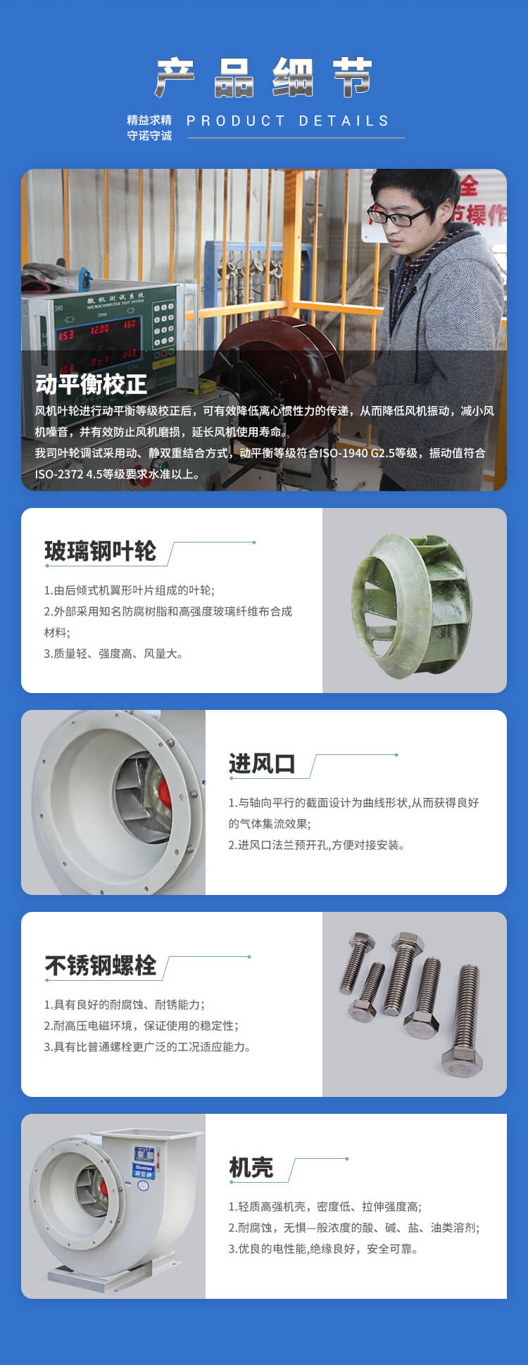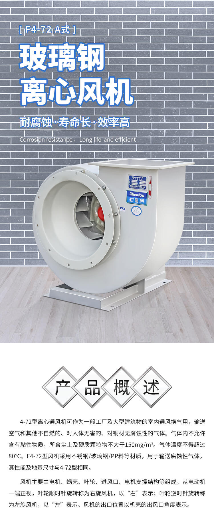 適用于化工、紡織、電鍍、實驗室等場所排送含有一定濃度的酸、堿、鹽等腐蝕性氣體,也可以作為一般工廠的建筑物通風換氣用