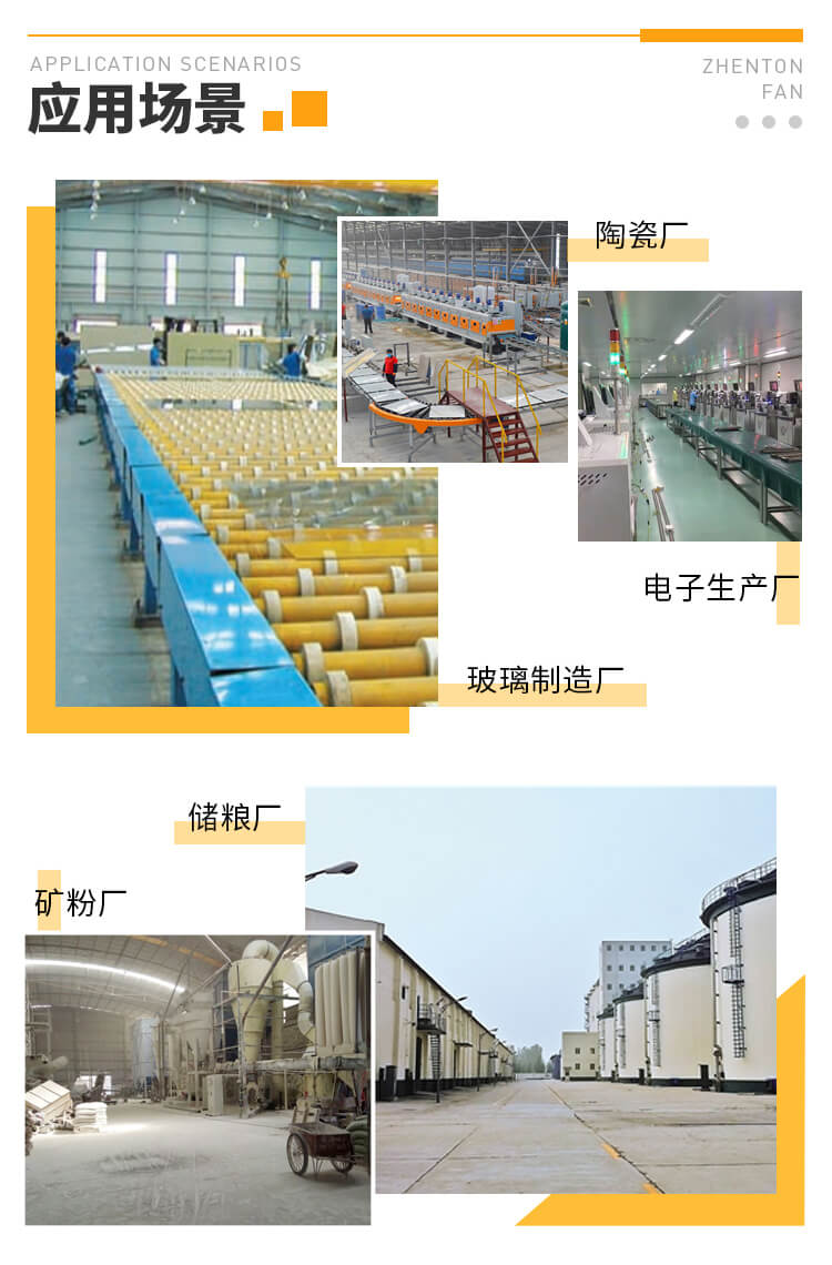 一般適用于鍛冶廠、、玻璃廠、, 陶瓷廠、無線電廠等高壓強(qiáng)制通風(fēng)及糧食廠、飼料廠、礦粉廠、沙場(chǎng)等加工行業(yè)的物料輸送。
