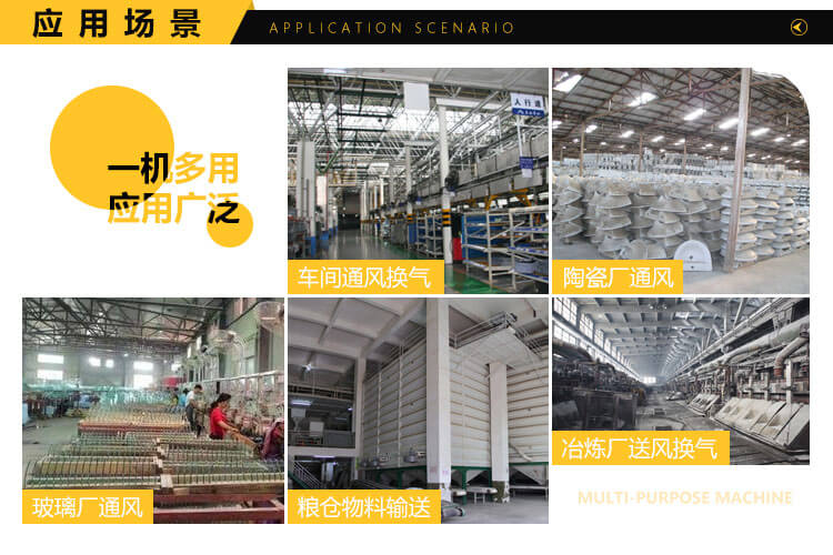 一般用于鍛冶爐、玻璃、陶瓷、電池、無線電等行業(yè)高壓強(qiáng)制送排風(fēng),糧食、飼料、礦粉等加工行業(yè)的物料輸送,紙箱機(jī)械設(shè)備、鋼化玻璃設(shè)備等配套使用。