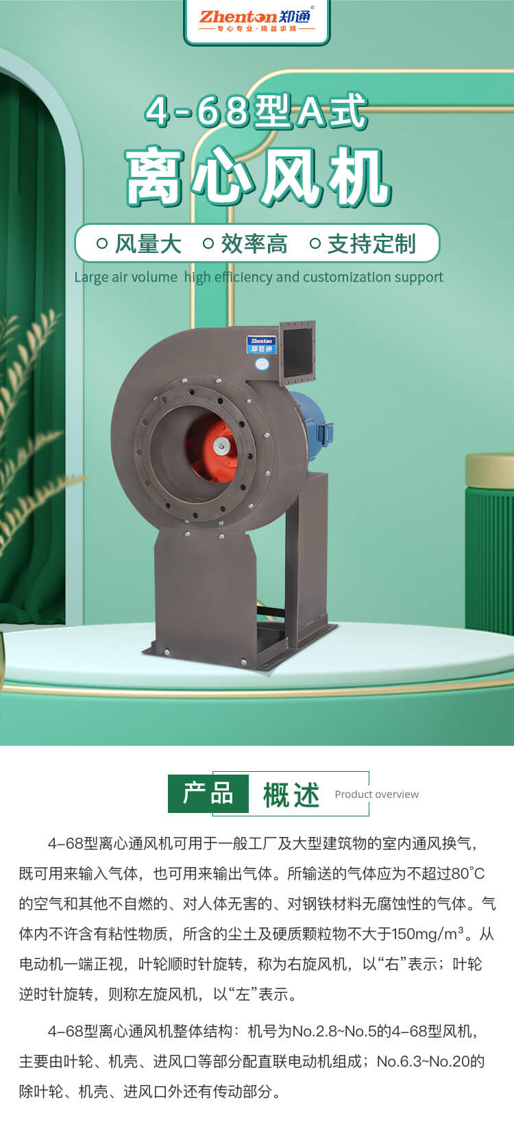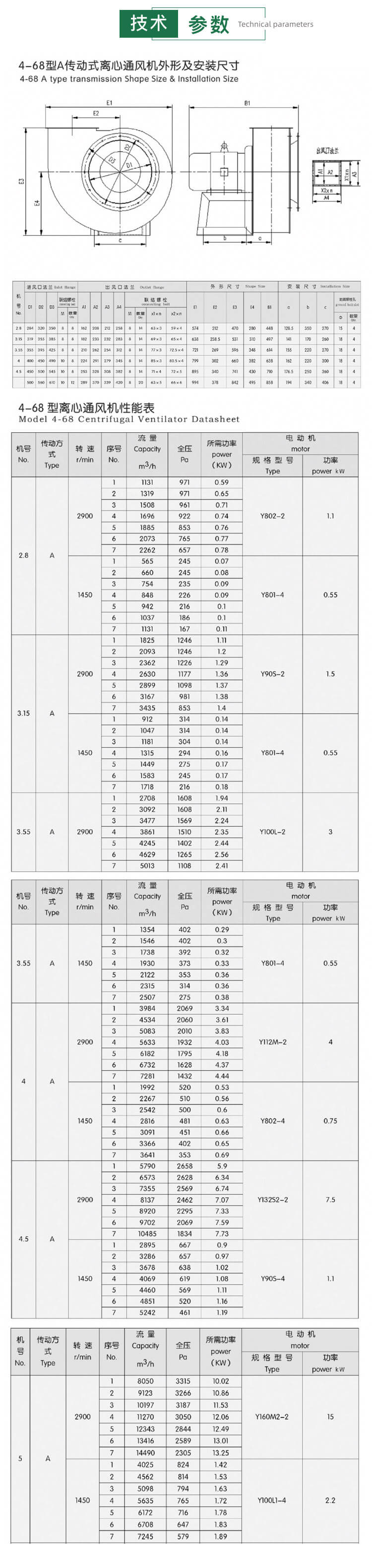 4-68型離心通風機可用于一般工廠通風排塵及大型建筑物的室內(nèi)通風換氣。