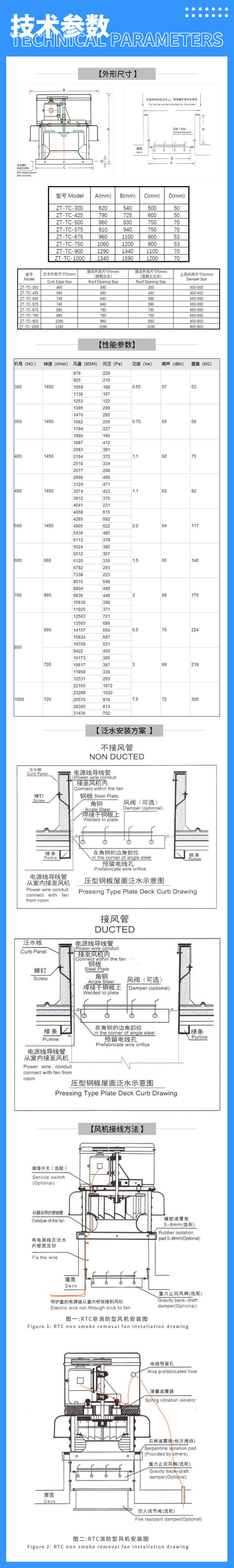 RTC(JRTC)系列屋頂風機根據(jù)不同的使用環(huán)境和輸送介質(zhì),制成常規(guī)型、防腐型、防爆型、防腐防爆型??筛鶕?jù)使用要求制成全鋁質(zhì)消防高溫排煙屋頂風機,并配設入口排煙防火閥。