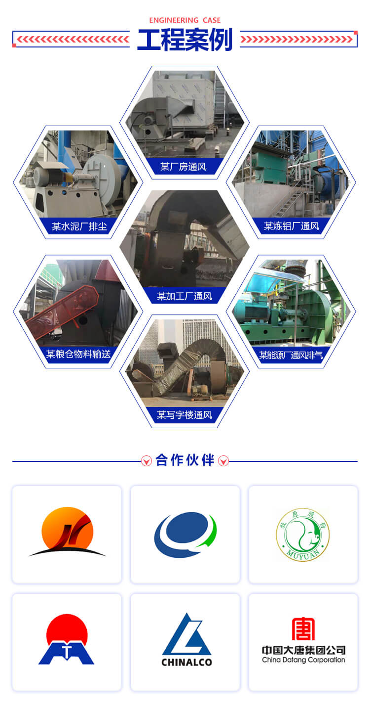 該風(fēng)機適合用配有省煤器(預(yù)熱器)和消煙除塵裝置 的0.5-35t/h工業(yè)鍋爐選用。凡進氣條件相近,性能又相適應(yīng)者均可選用,但最高進氣溫度不超過250℃。