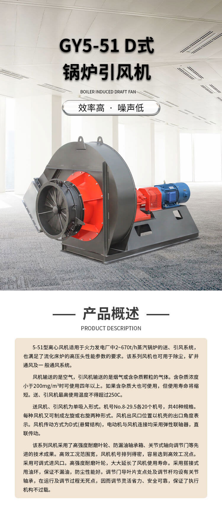 GY5-51鍋爐引風(fēng)機(jī)廣泛應(yīng)用于電力、冶金、化工、建材等行業(yè),主要配套工業(yè)鍋爐、電站鍋爐、工業(yè)除塵器、工業(yè)脫硫等系統(tǒng)用風(fēng)機(jī)。