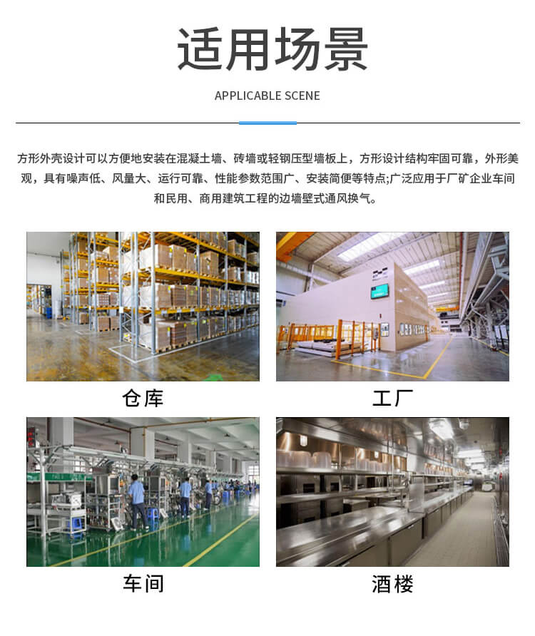 方形壁式軸流風(fēng)機(jī)廣泛應(yīng)用于:石油、軍工、化工、機(jī)械、冶金等行業(yè)的車間、倉(cāng)庫(kù)、辦公室、加油站等場(chǎng)所的降溫通風(fēng)。如需特殊場(chǎng)合需要防爆的,可定制防爆款。